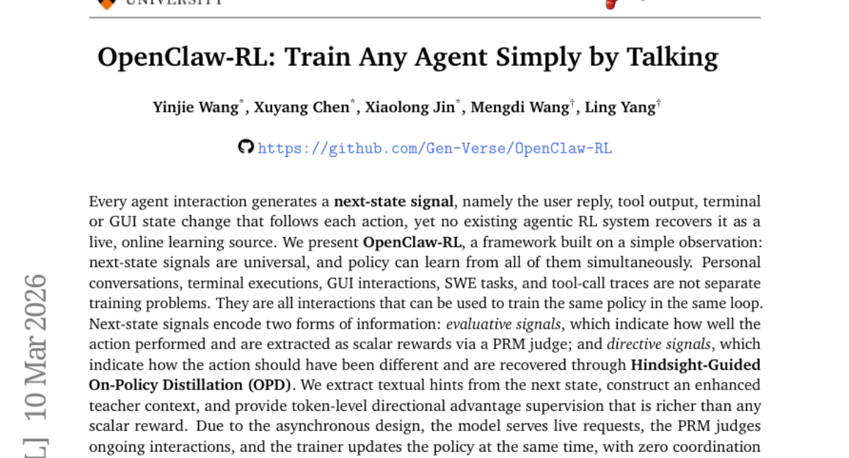 OpenClaw-RL: Train Any Agent Simply by Talking authored a paper 17 days ago