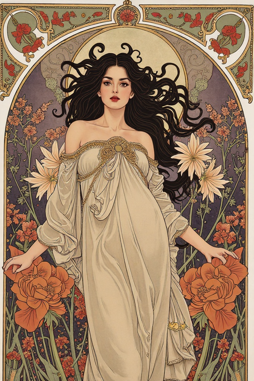 Output Quality: The ultimate measure is the generated art. Here are samples from our QLoRA fine-tuned model on the derekl35/alphonse-mucha-style dataset: