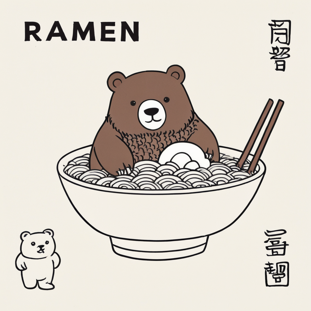 pipeline("A bowl of ramen shaped like a cute kawaii bear, by Feng Zikai").images[0]
