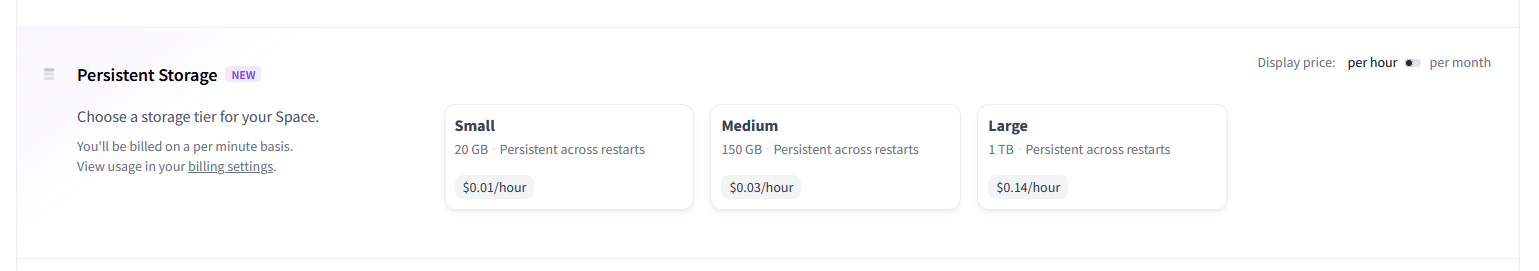 You can choose the storage tier of your choice to access disk space that persists across restarts of your Space.