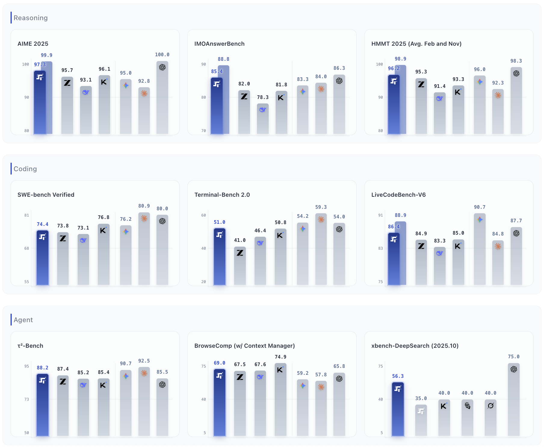 | HMMT 2025 (Nov.) | 94.0 | 90.2 | 89.2*/— | 93.5 | 74.3* | 91.0* |